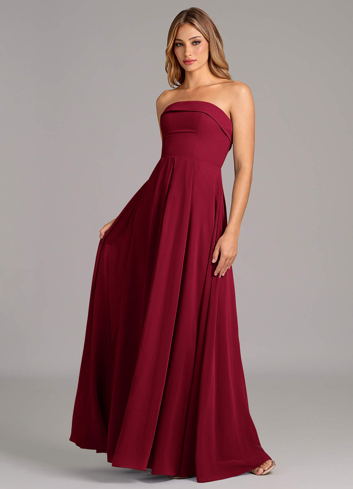 Burgundy A-Line Strapless Chiffon Convertible Dress