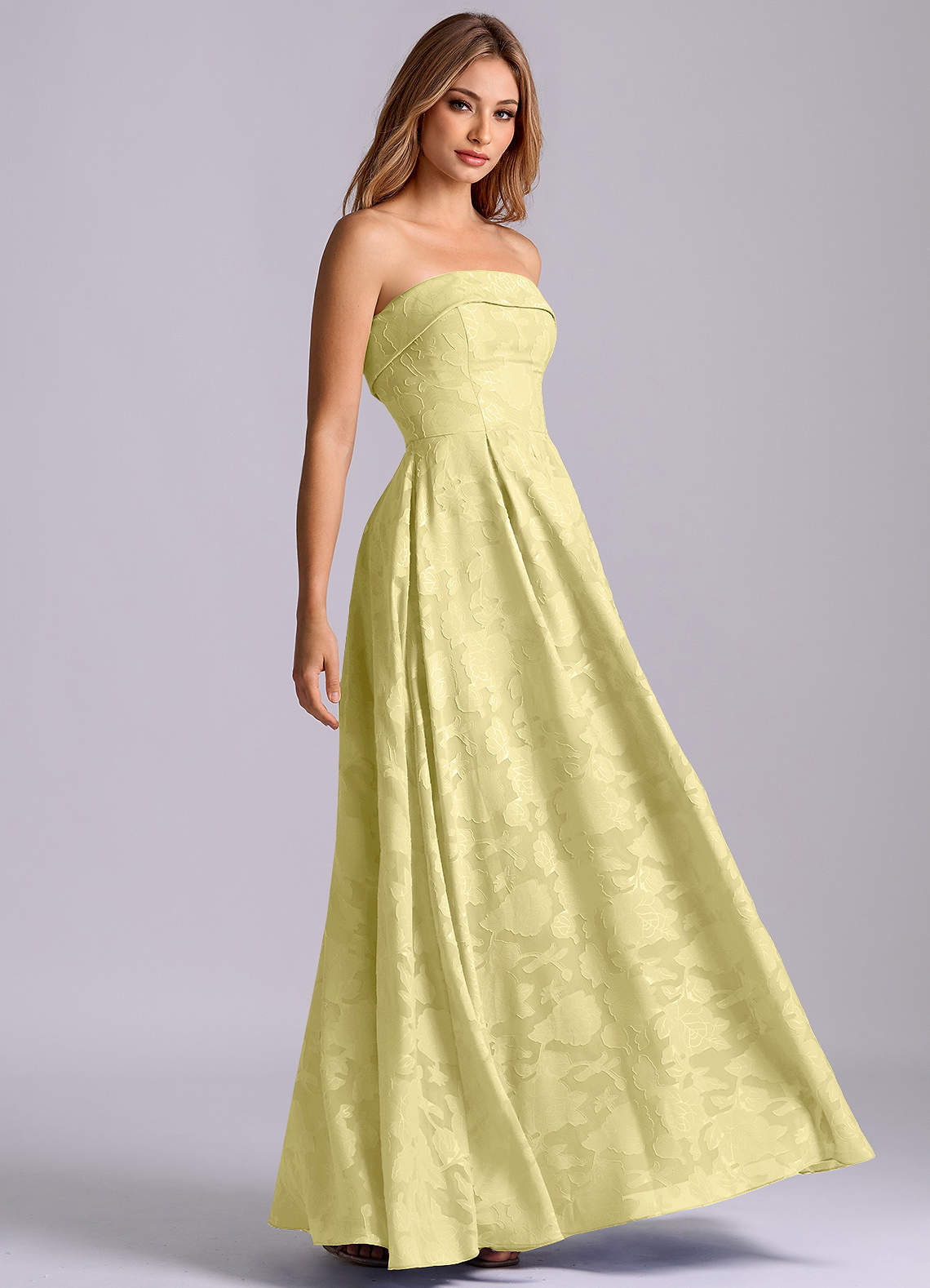 Lemon Sorbet A-Line Strapless Floral Burnout Dress