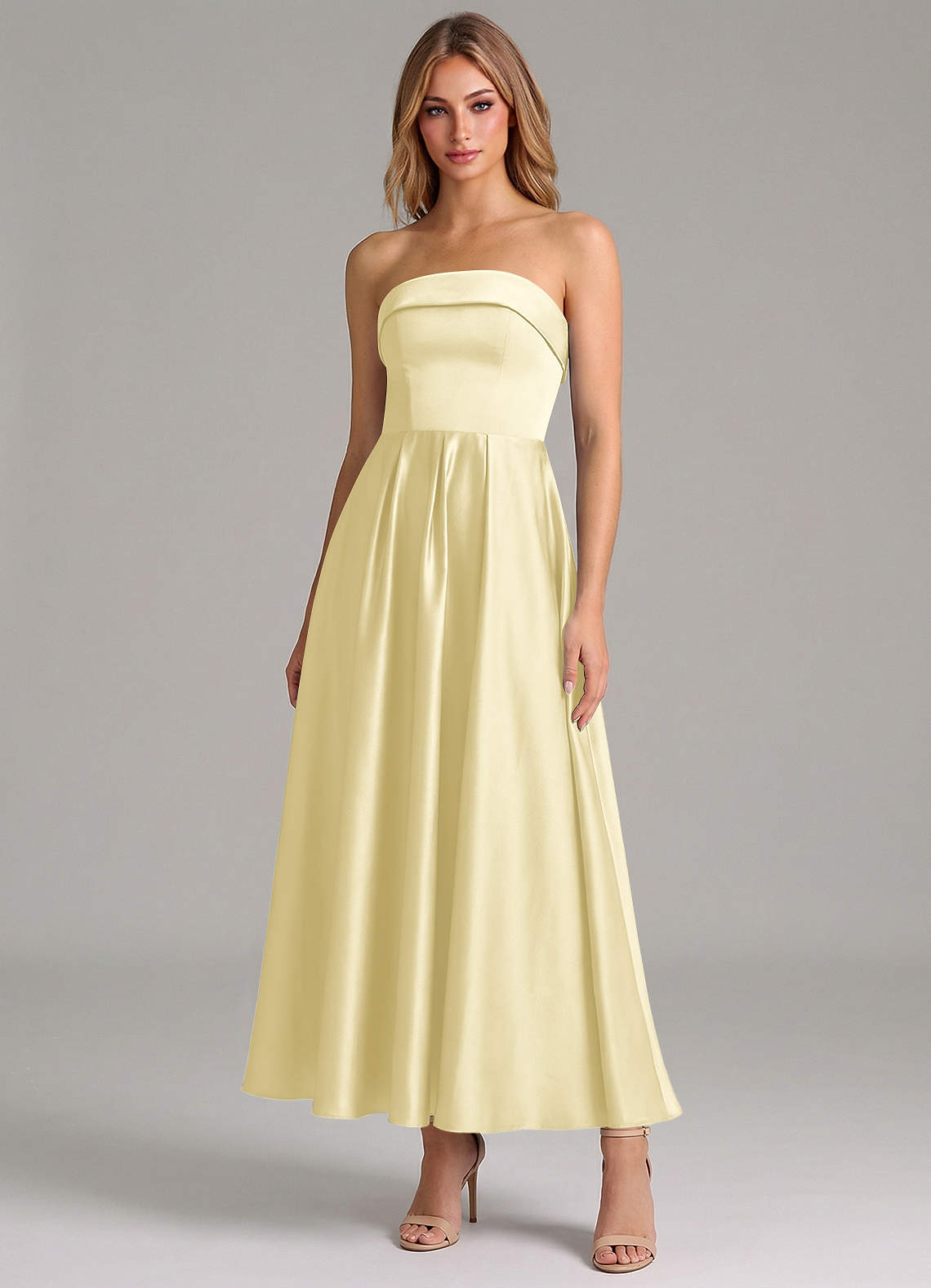 Lemon Sorbet A-Line Pleated Stretch Satin Dress
