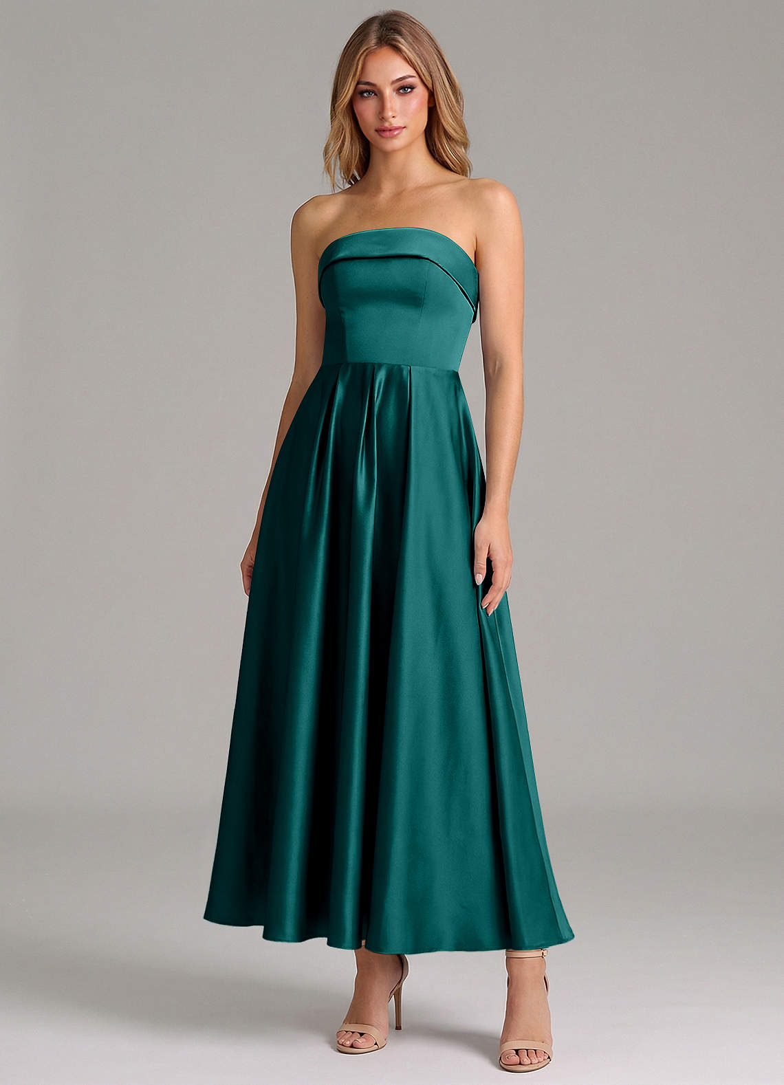 Peacock A-Line Pleated Stretch Satin Dress