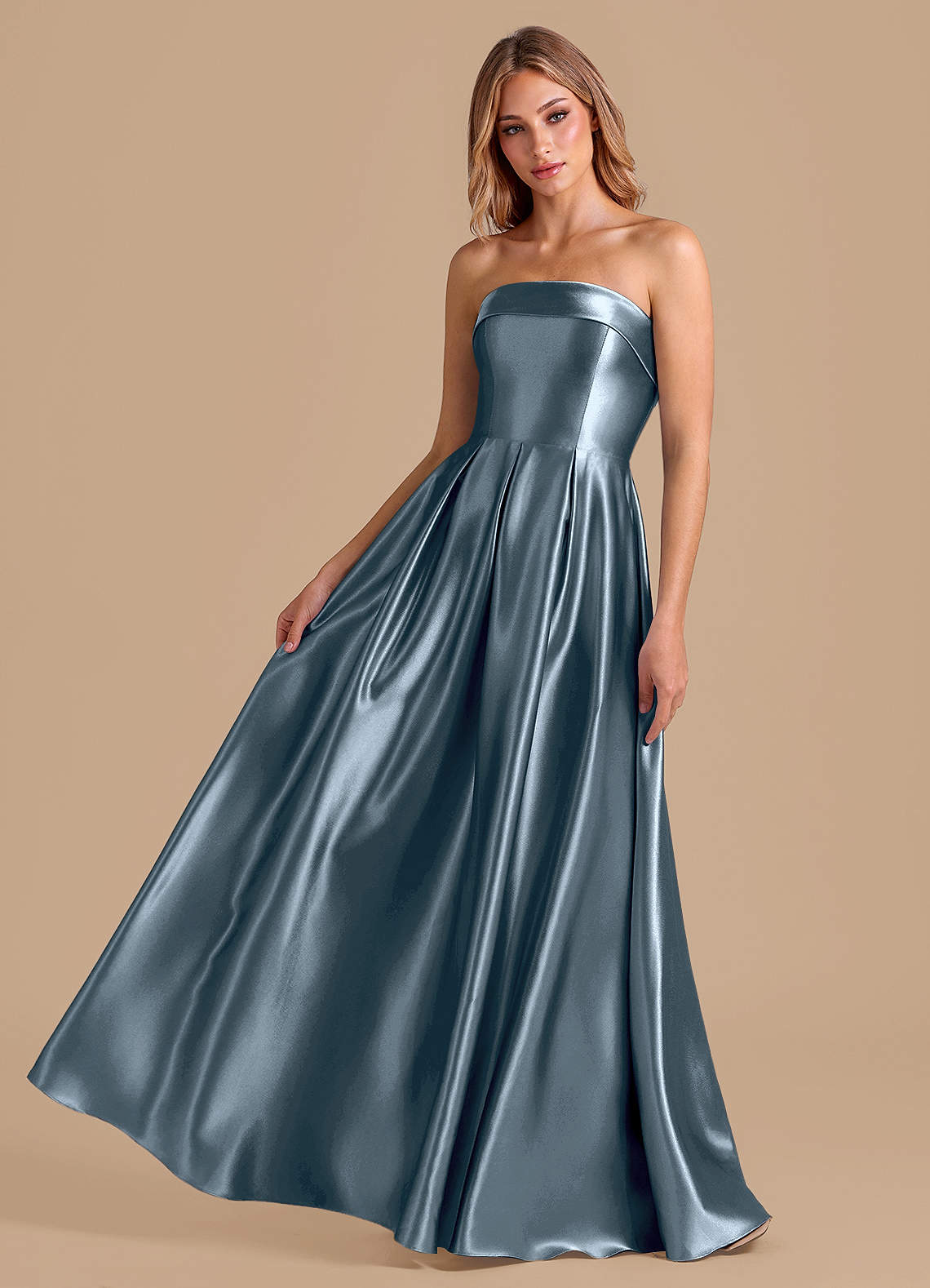 Twilight A-Line Pleated Metallic Satin Dress