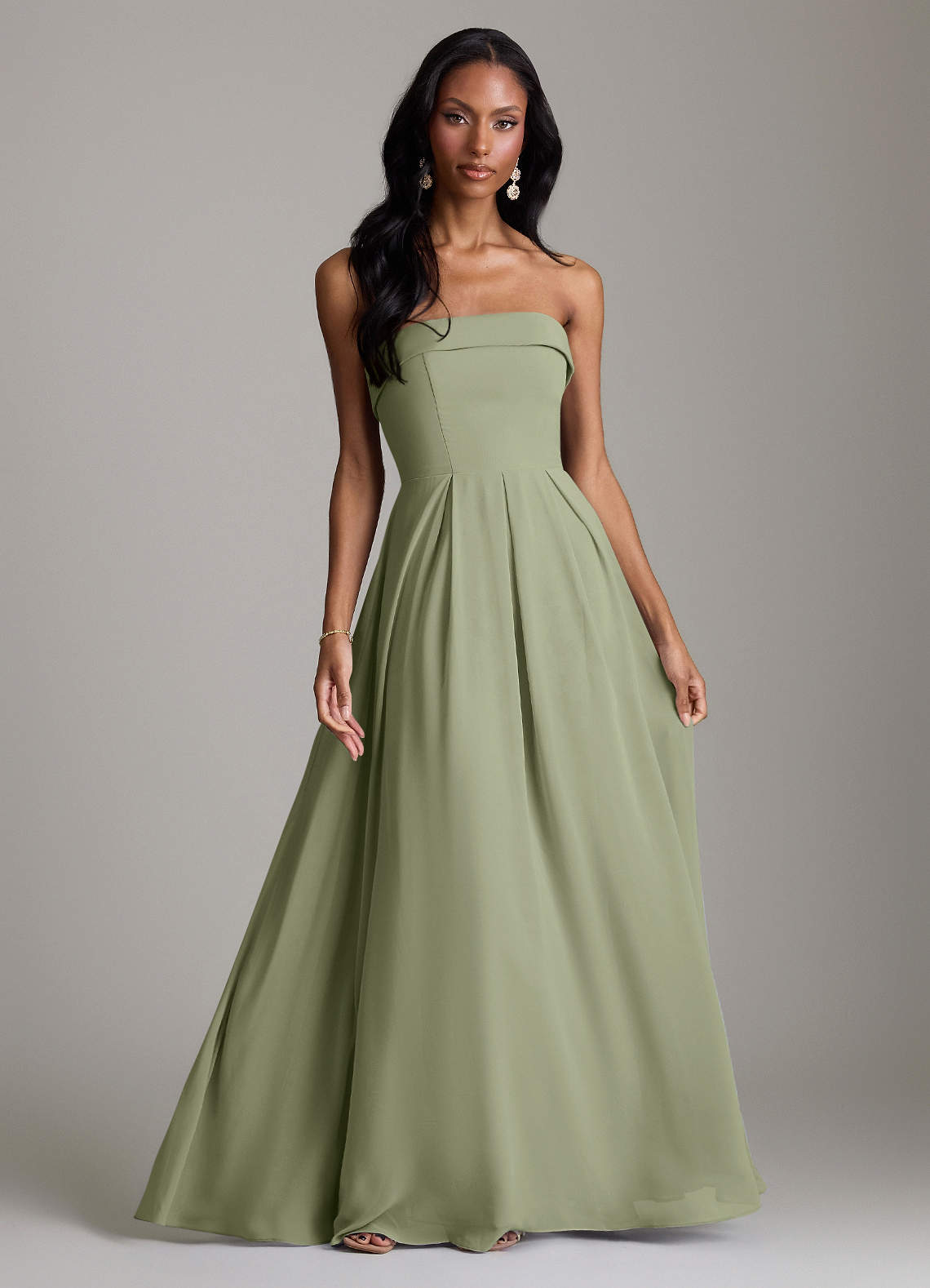 Pistachio A-Line Strapless Chiffon Convertible Dress