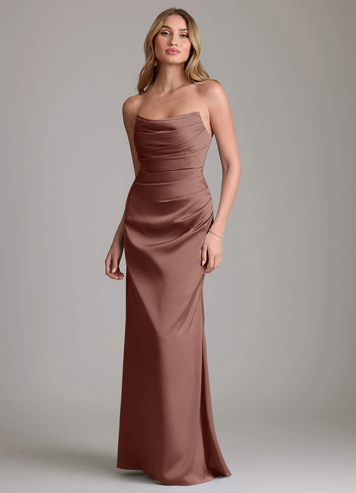 Espresso Mermaid Strapless Stretch Satin Convertible Dress