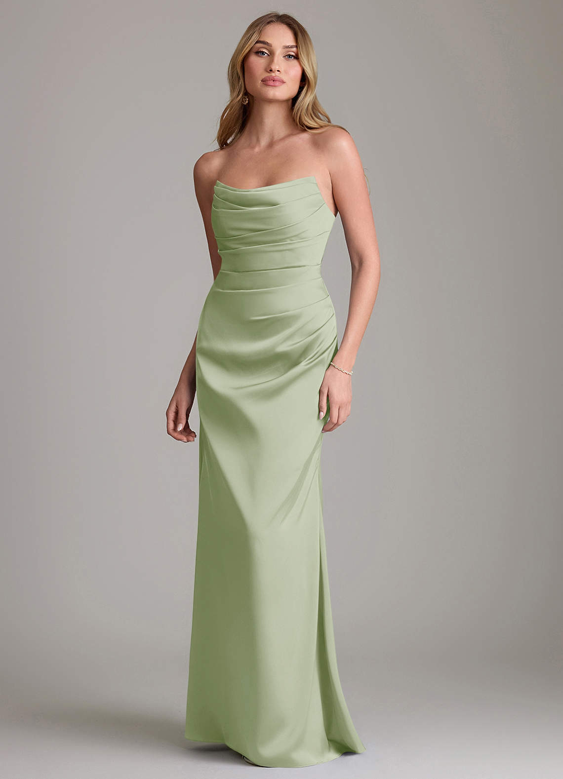 Dusty Sage Mermaid Strapless Stretch Satin Convertible Dress