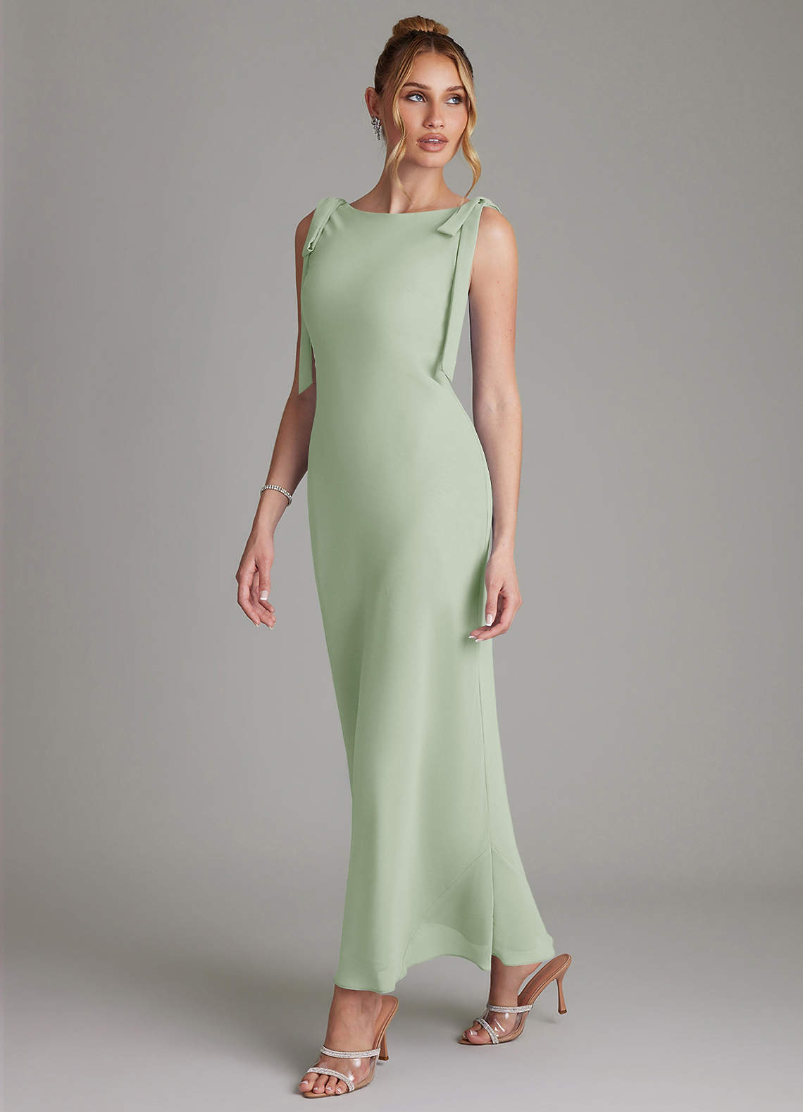 Dusty Sage Mermaid Bow Chiffon Dress