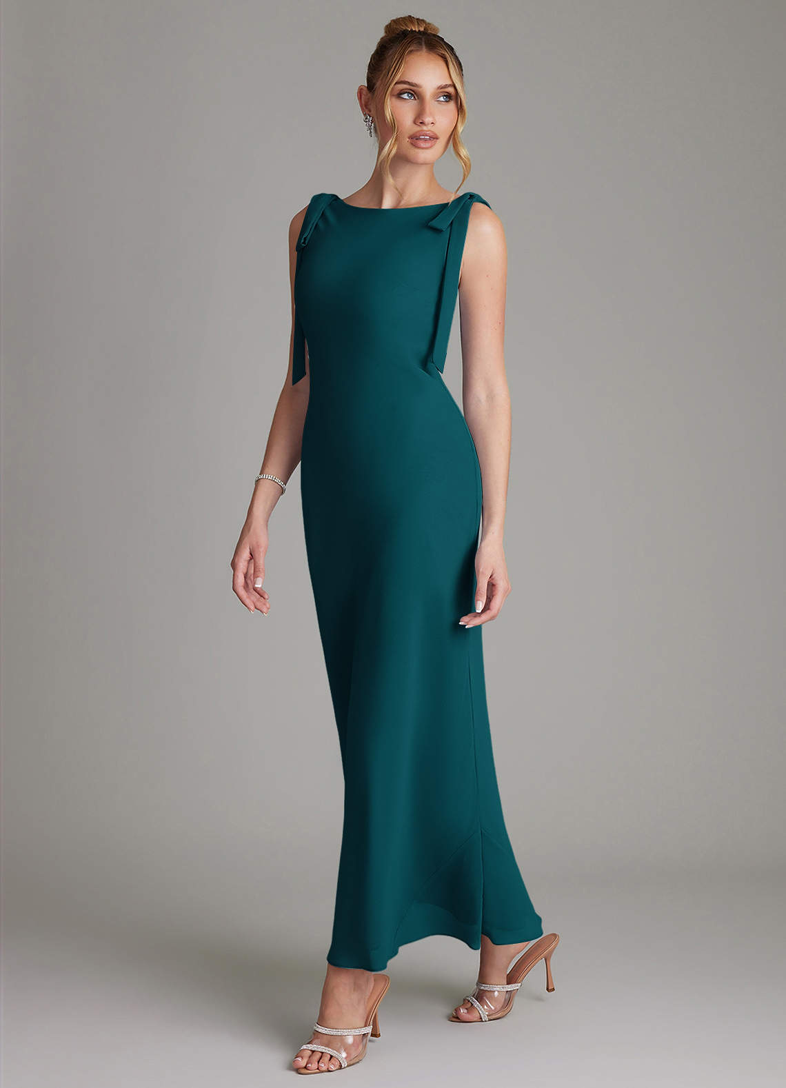 Azazie Luddie Bridesmaid Dresses Pine Mermaid Bow Chiffon Dress image1