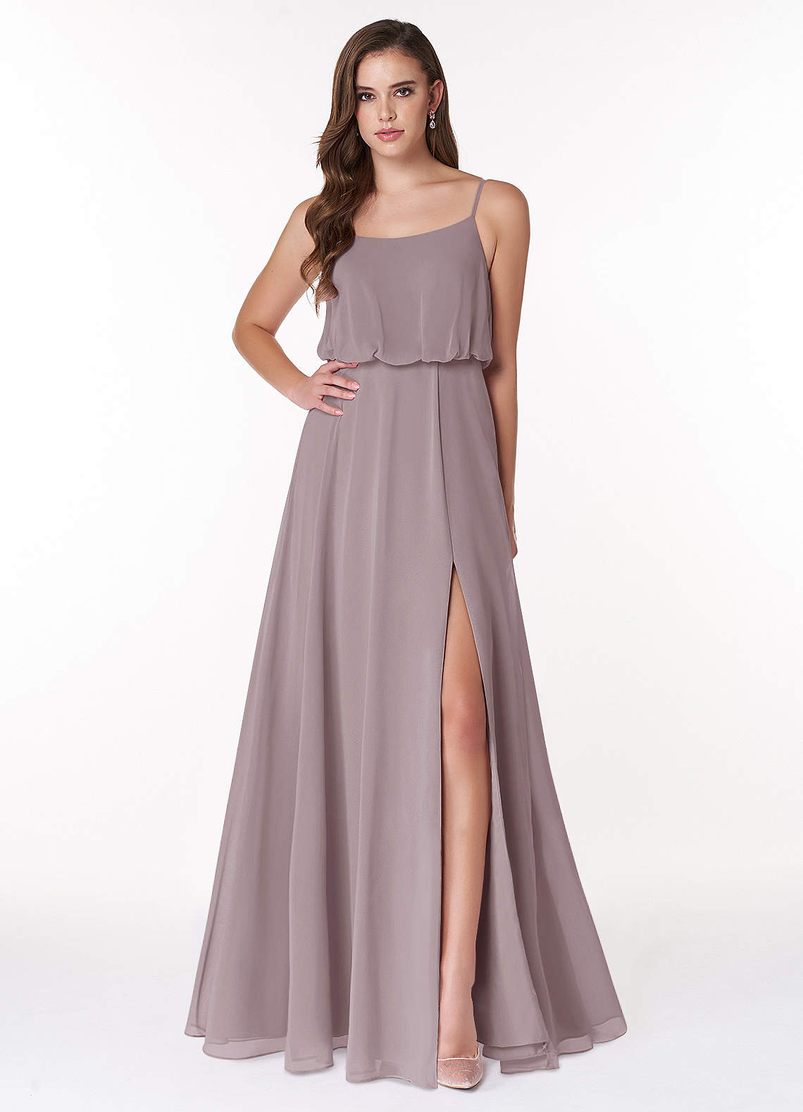 Dusk A-Line Scoop Blouson Chiffon Dress