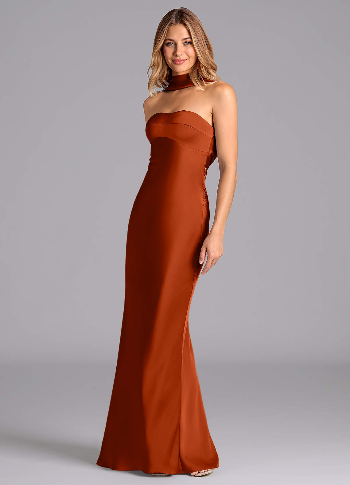 Paprika Mermaid Strapless Stretch Satin Dress