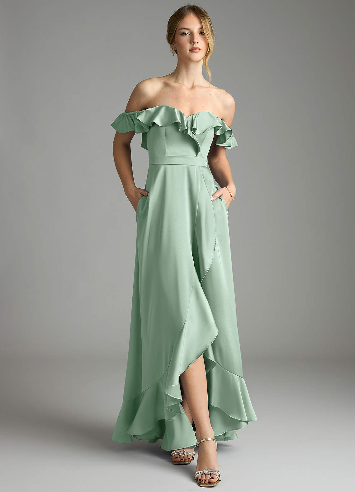 Agave A-Line Off the Shoulder Stretch Satin Convertible Dress