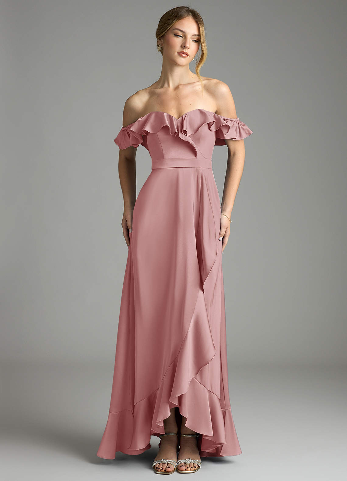 Dusty Rose A-Line Off the Shoulder Stretch Satin Convertible Dress