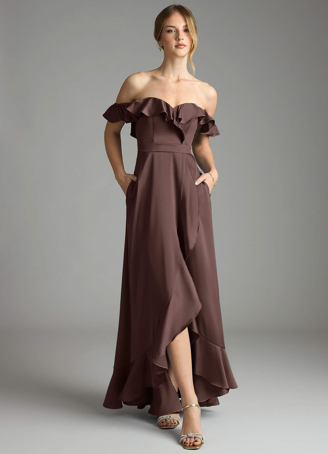 Ganache A-Line Off the Shoulder Stretch Satin Convertible Dress