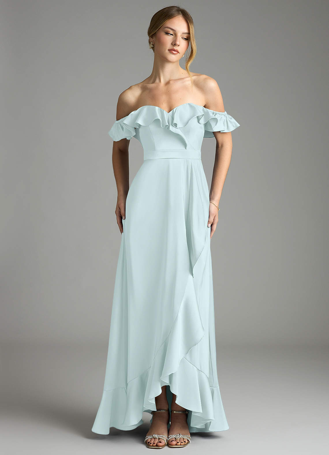 Sea Glass A-Line Off the Shoulder Stretch Satin Convertible Dress