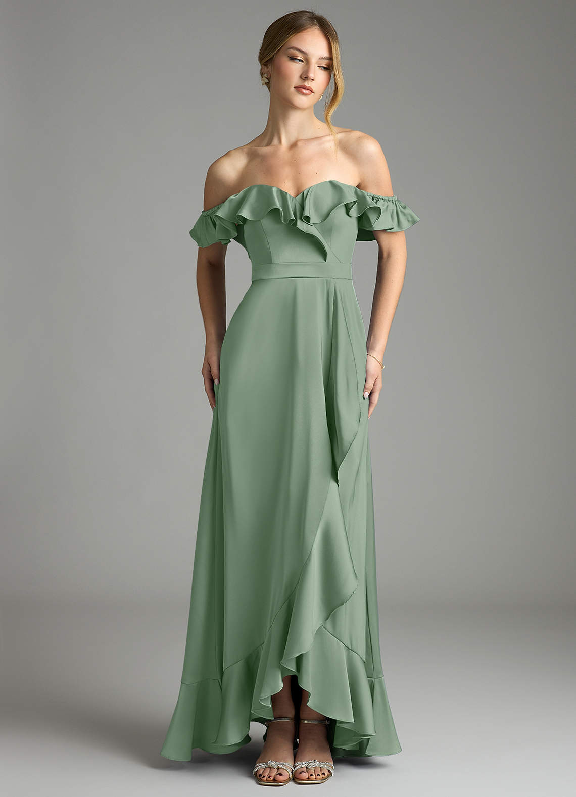 Matcha A-Line Off the Shoulder Stretch Satin Convertible Dress