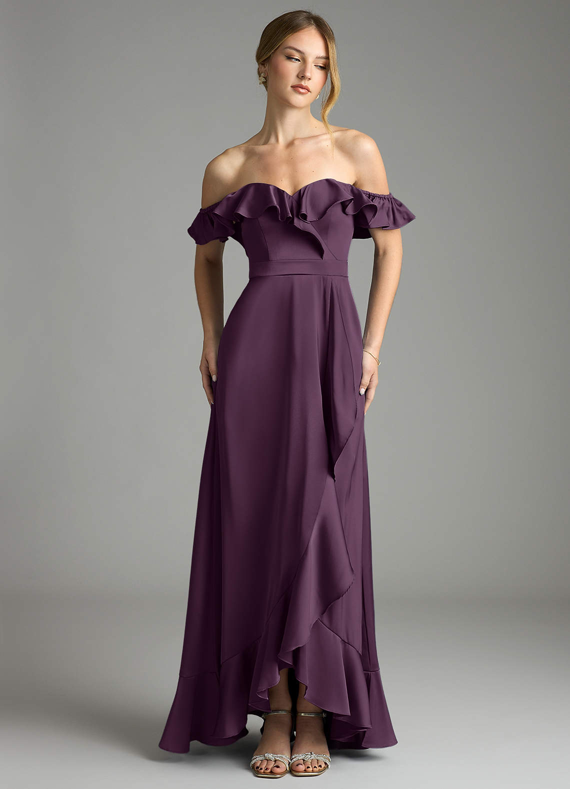 Plum A-Line Off the Shoulder Stretch Satin Convertible Dress
