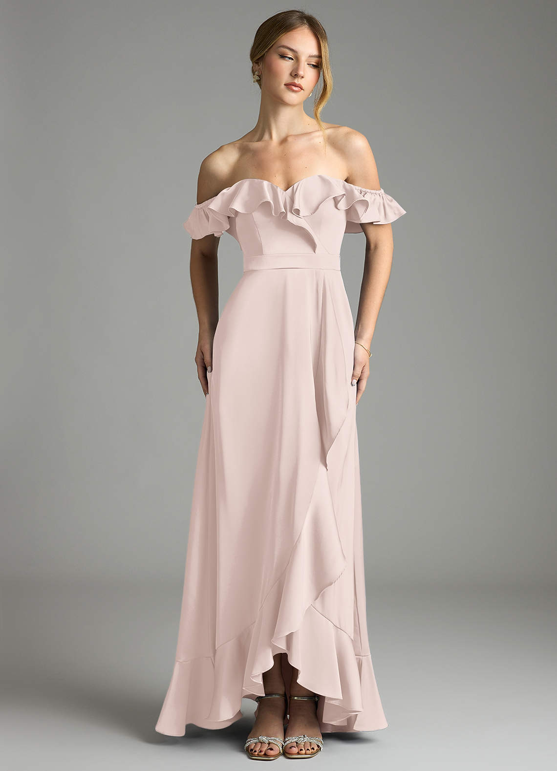 Blushing Pink A-Line Off the Shoulder Stretch Satin Convertible Dress