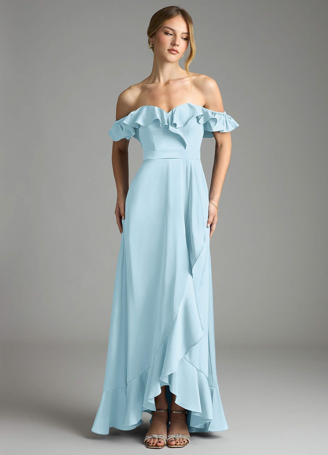 Sky Blue A-Line Off the Shoulder Stretch Satin Convertible Dress