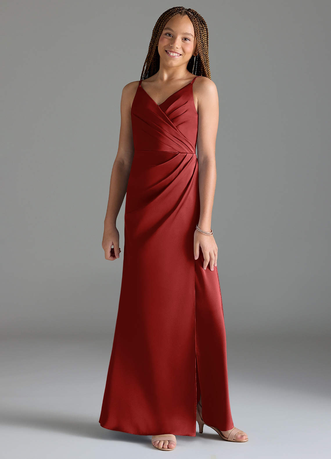 Azazie Maci Junior Pomegranate Mermaid Pleated Stretch Satin Dress image1