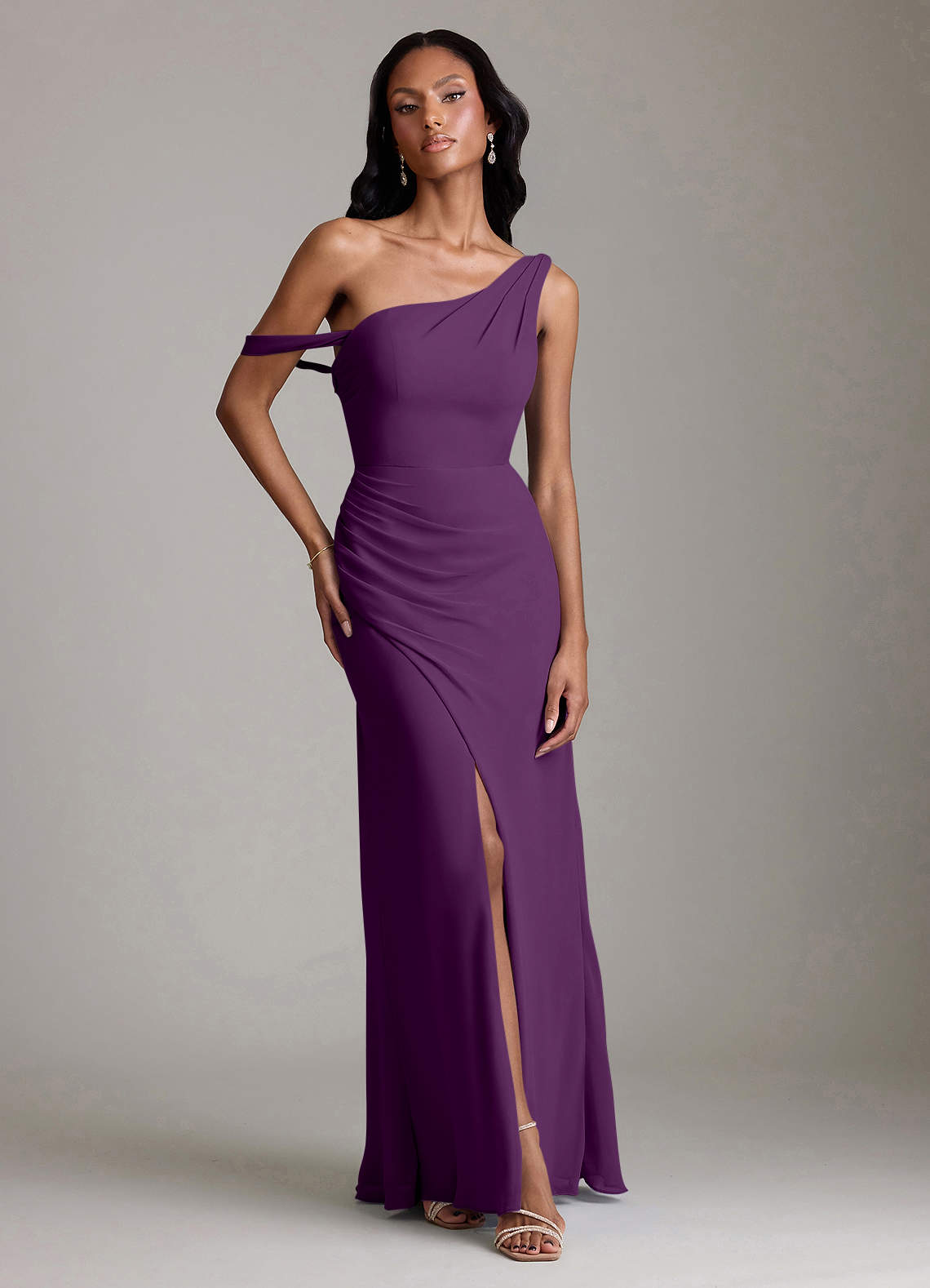 Grape Mermaid One Shoulder Chiffon Convertible Dress