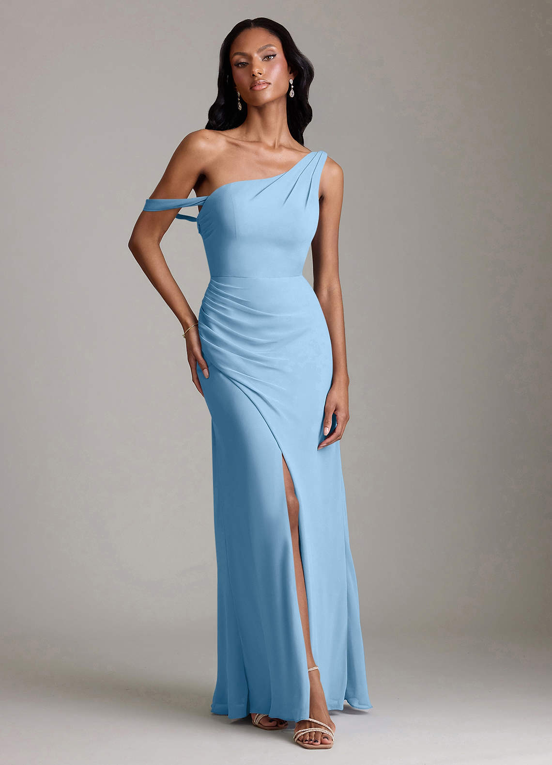 Steel Blue Mermaid One Shoulder Chiffon Convertible Dress
