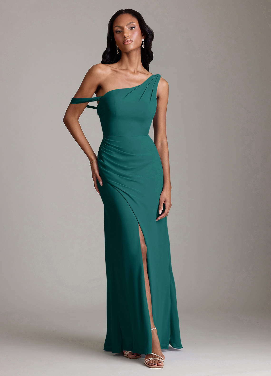Peacock Mermaid One Shoulder Chiffon Convertible Dress