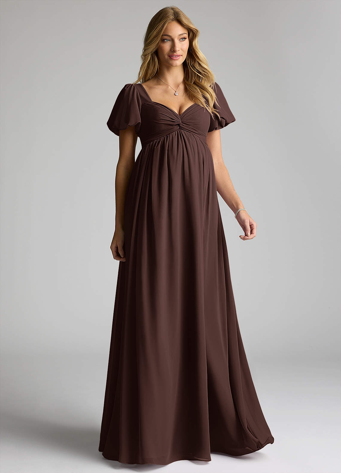 Bow Chiffon Floor-Length Dress Ganache