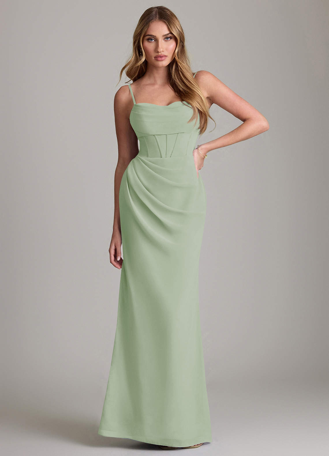 Dusty Sage Sheath Pleated Chiffon Dress