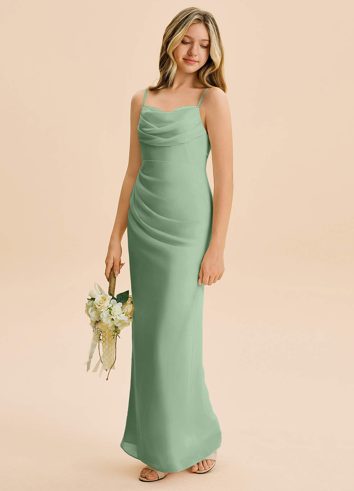 Matcha Sheath Pleated Chiffon Dress