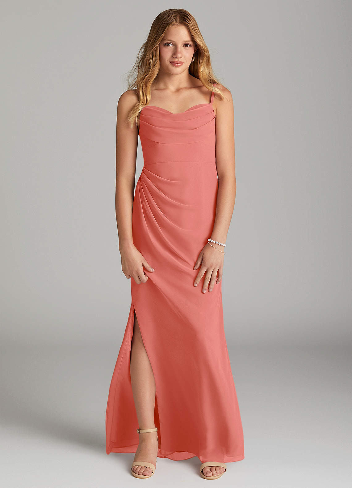 Salmon Pink Sheath Pleated Chiffon Dress