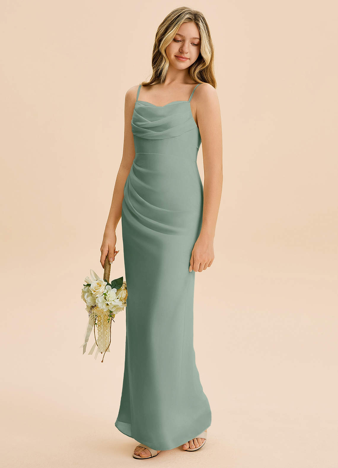 Silver Sage Sheath Pleated Chiffon Dress