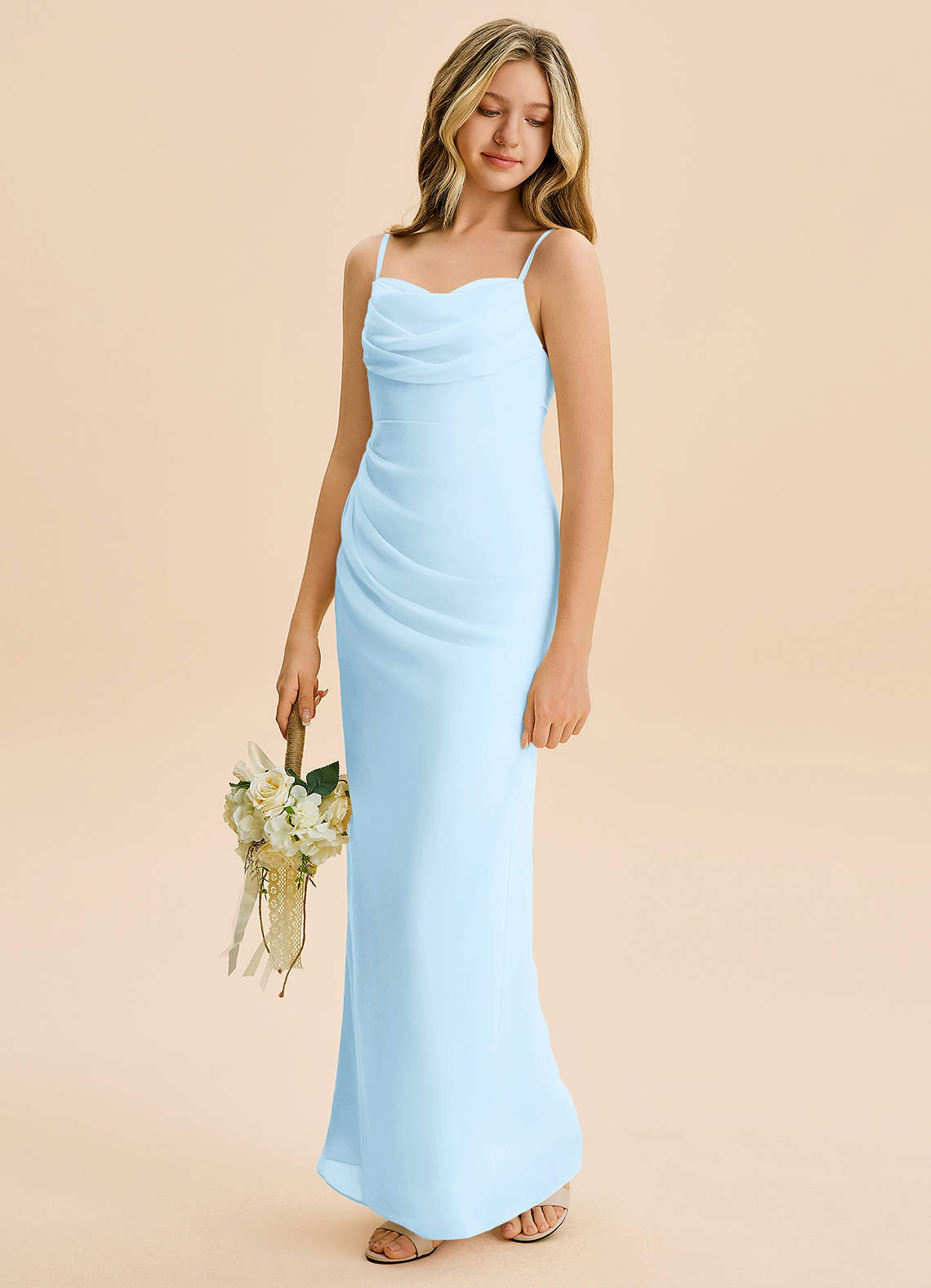 Sky Blue Sheath Pleated Chiffon Dress