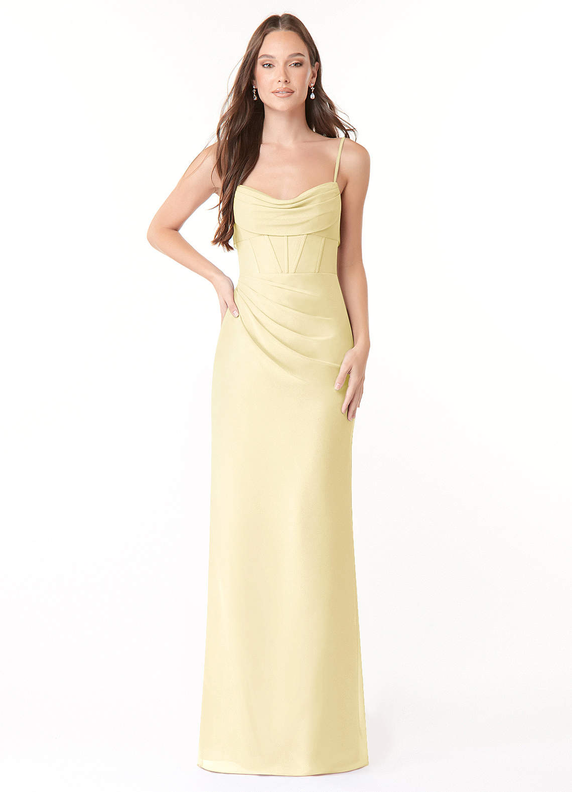 Lemon Sorbet Sheath Pleated Chiffon Dress
