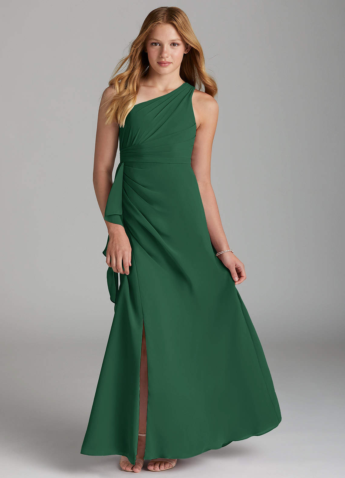 Dark Green A-Line Pleated Chiffon Dress