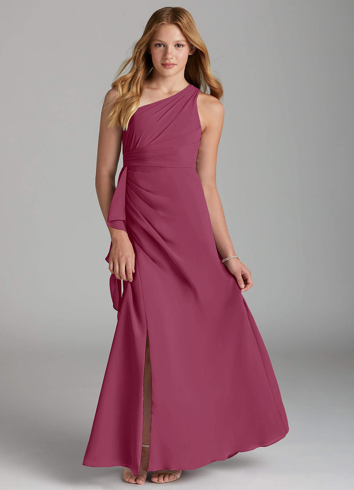 Azazie Maive Junior Mulberry A-Line Pleated Chiffon Dress image1