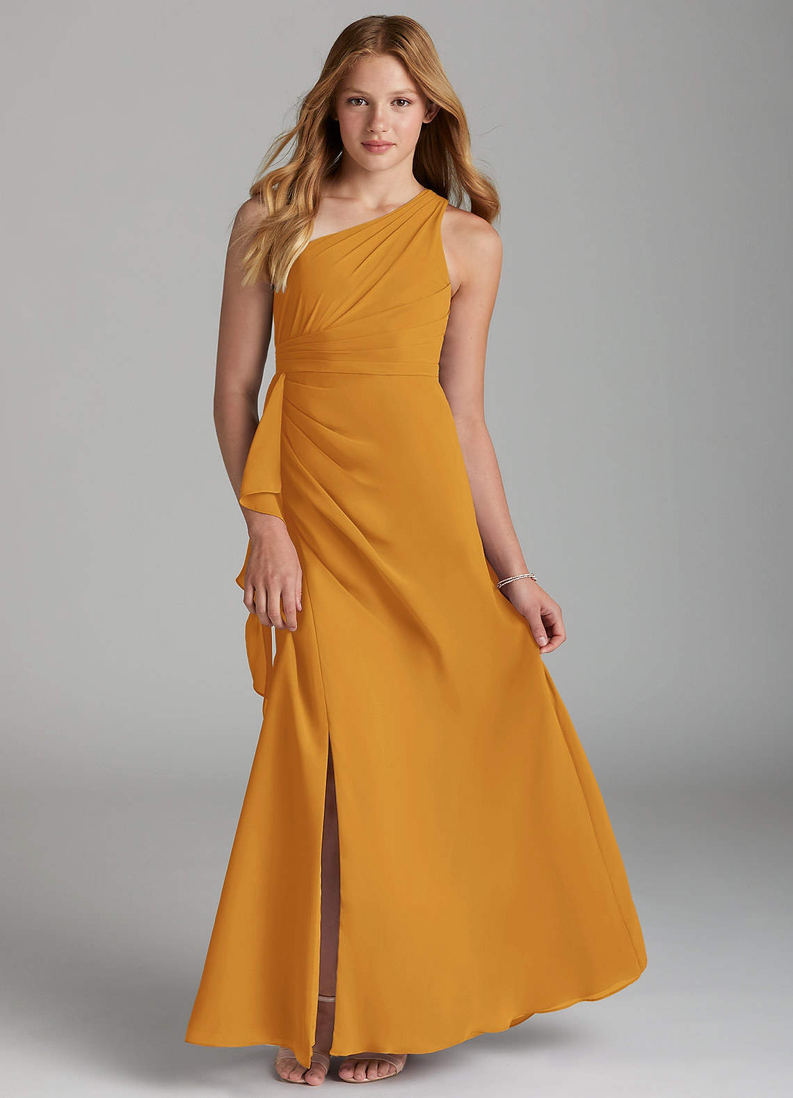 Butterscotch A-Line Pleated Chiffon Dress
