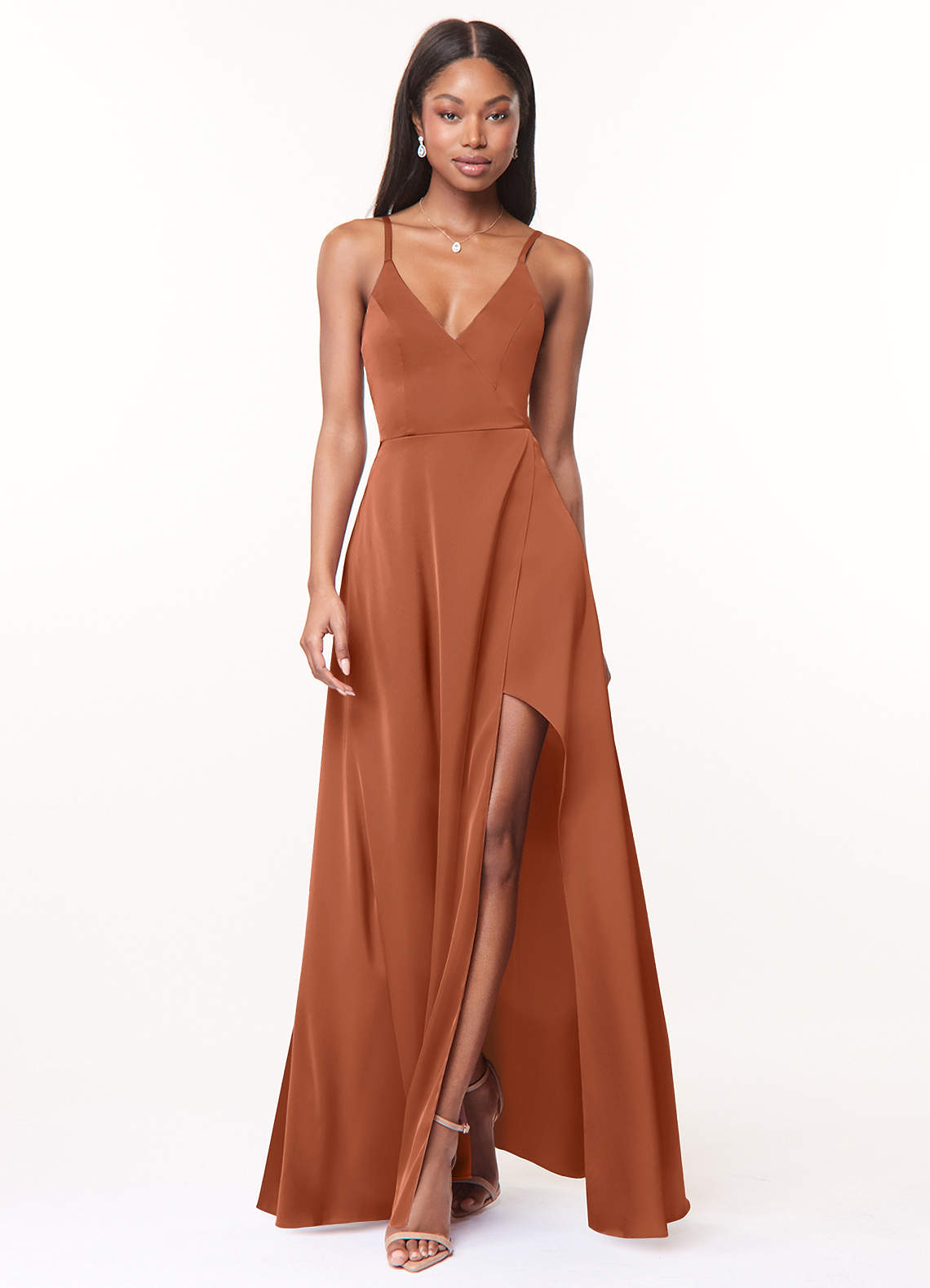 Cedar Rose A-Line V-Neck Stretch Satin Dress