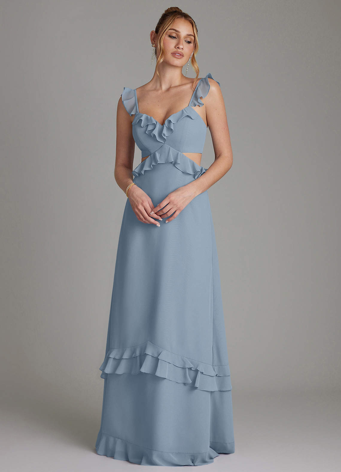 Dusty Blue A-Line Corset Chiffon Dress