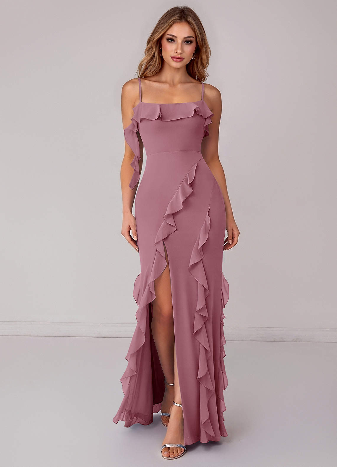 Vintage Mauve Sheath Ruched Chiffon Dress