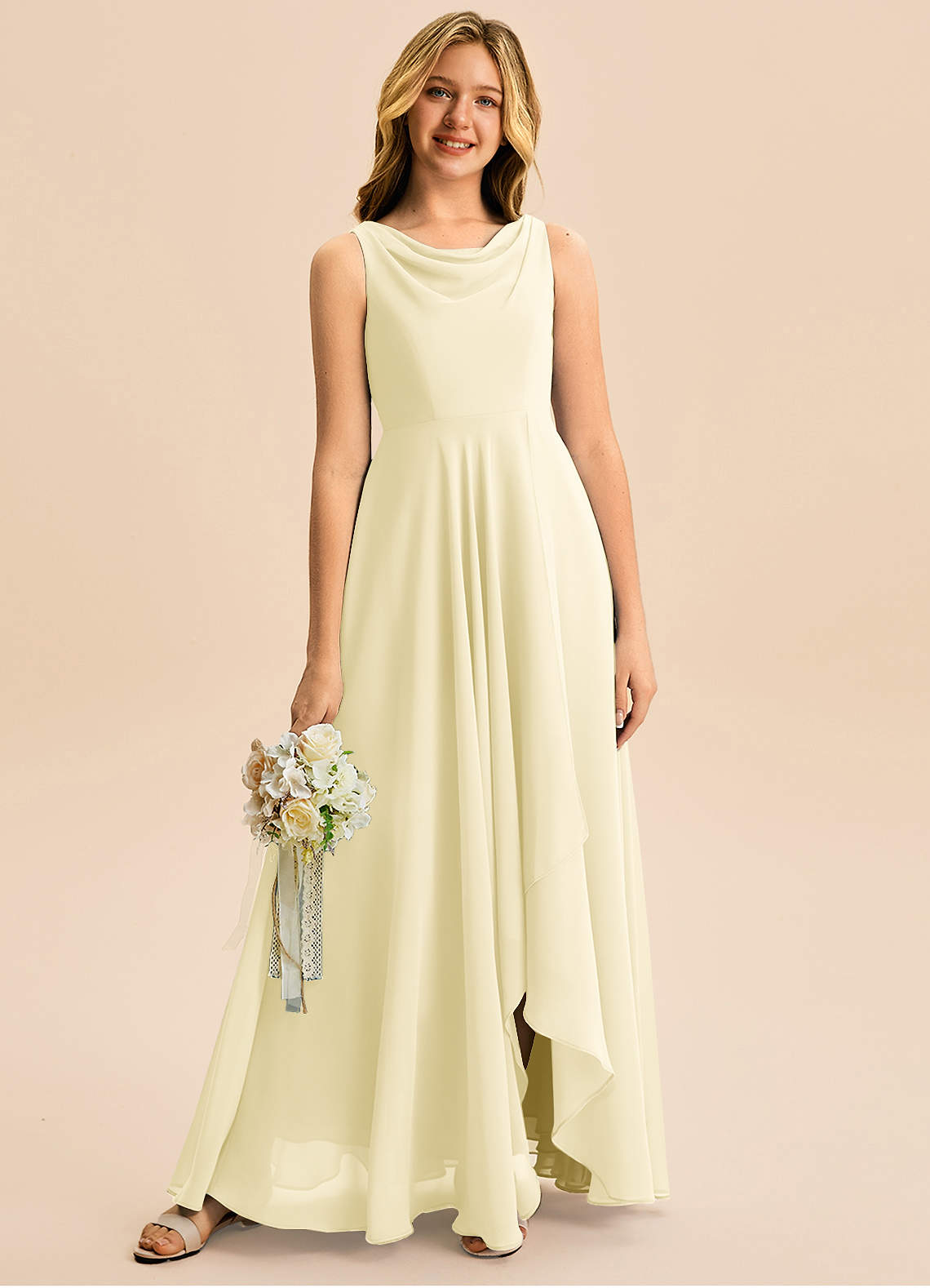 Lemon Sorbet A-Line Pleated Chiffon Dress