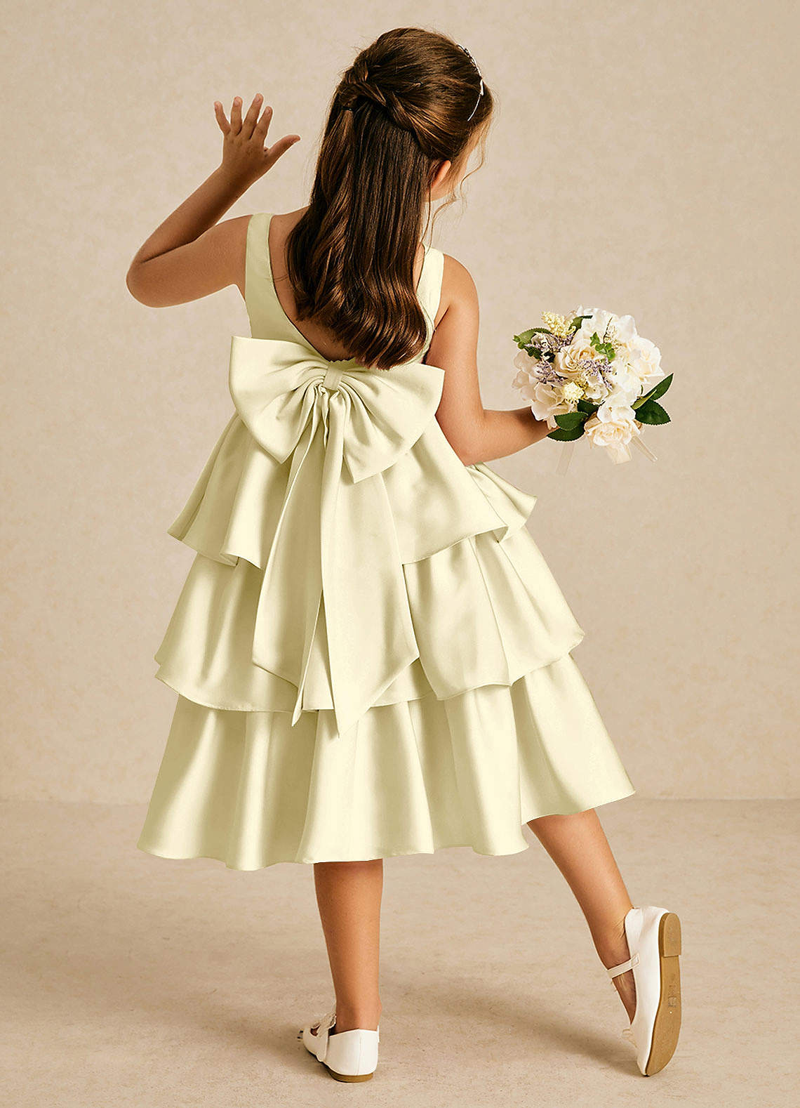 Azazie Margery Flower Girl Dresses Lemon Sorbet A-Line Bow Stretch Satin Dress image1