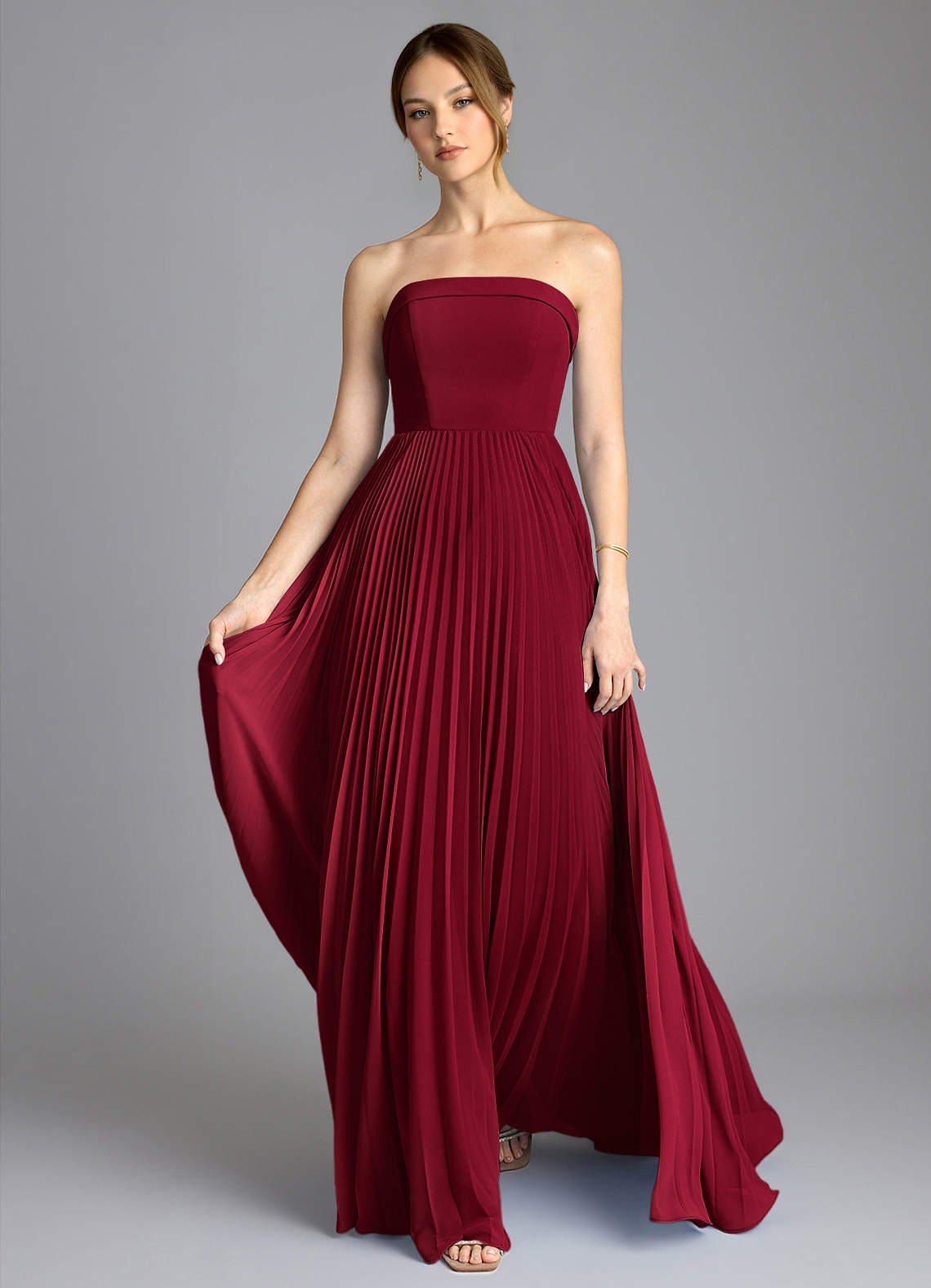 Burgundy A-Line Strapless Chiffon Dress