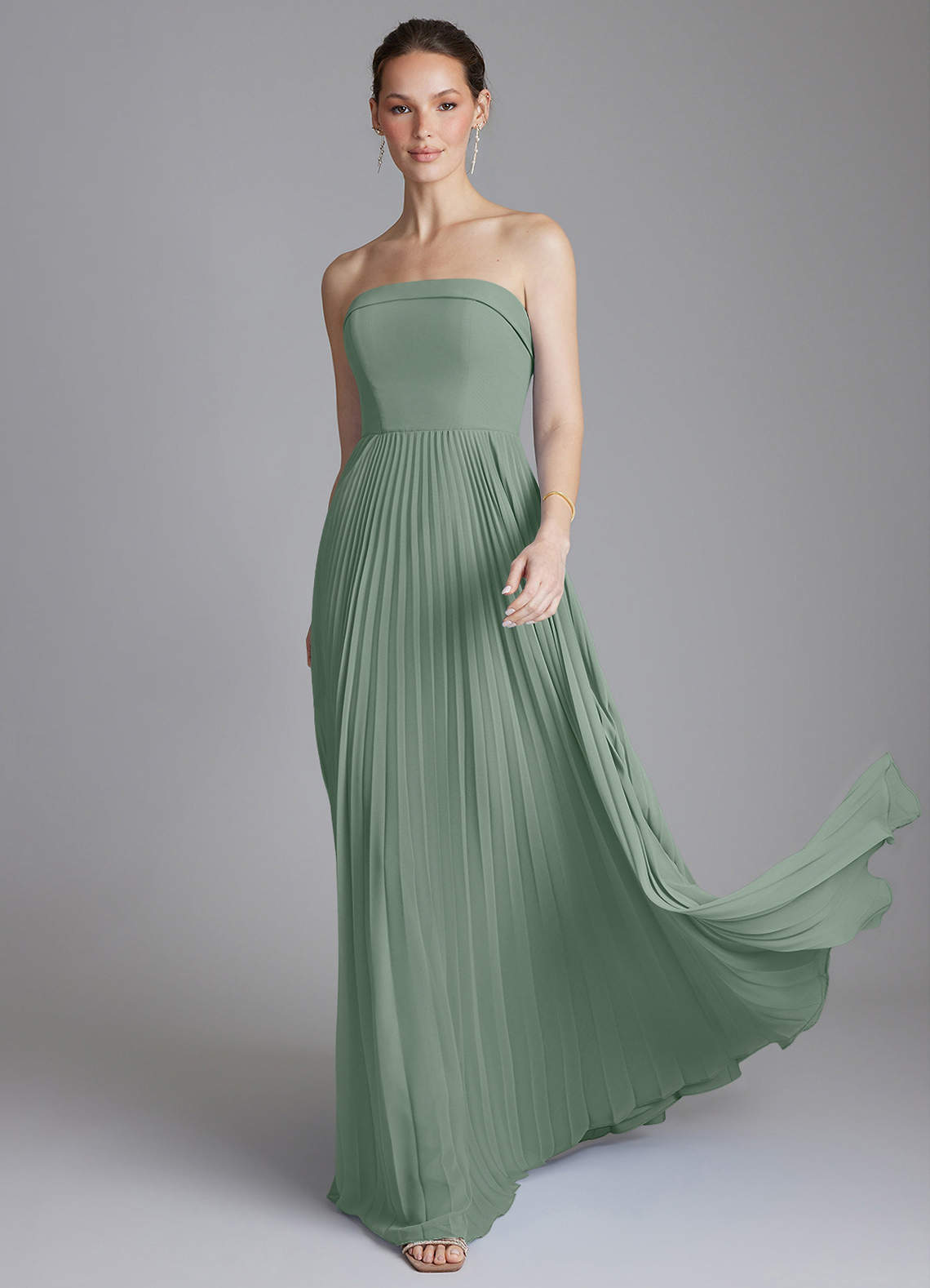 Silver Sage A-Line Strapless Chiffon Dress