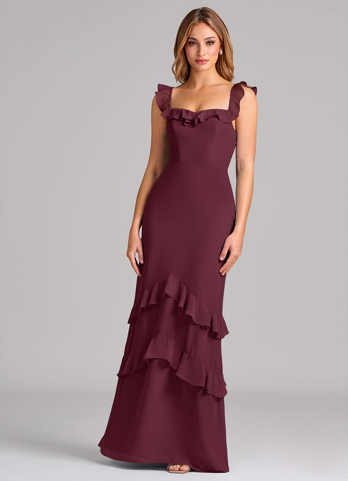Cabernet Mermaid Off the Shoulder Chiffon Dress