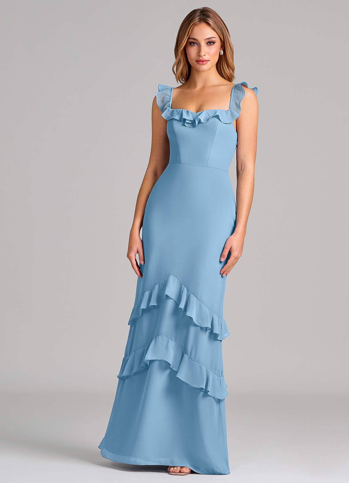 Steel Blue Mermaid Off the Shoulder Chiffon Dress