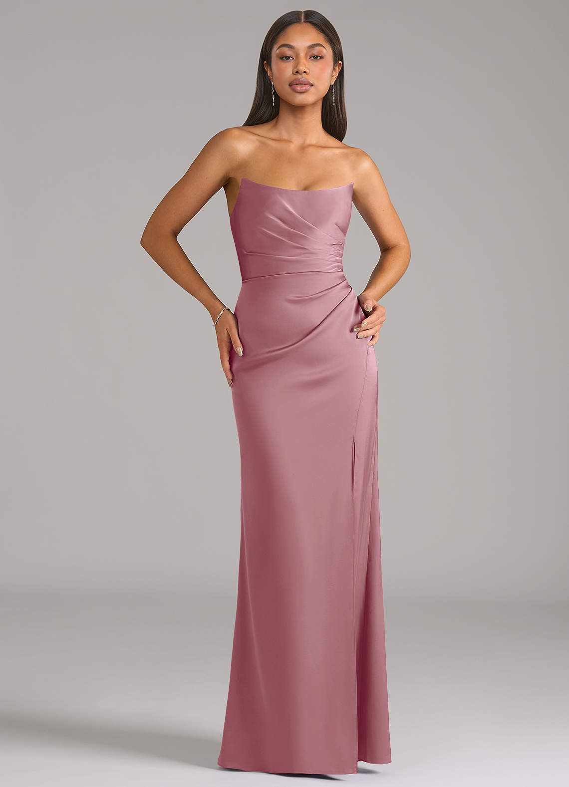 Vintage Mauve Sheath Strapless Stretch Satin Convertible Dress