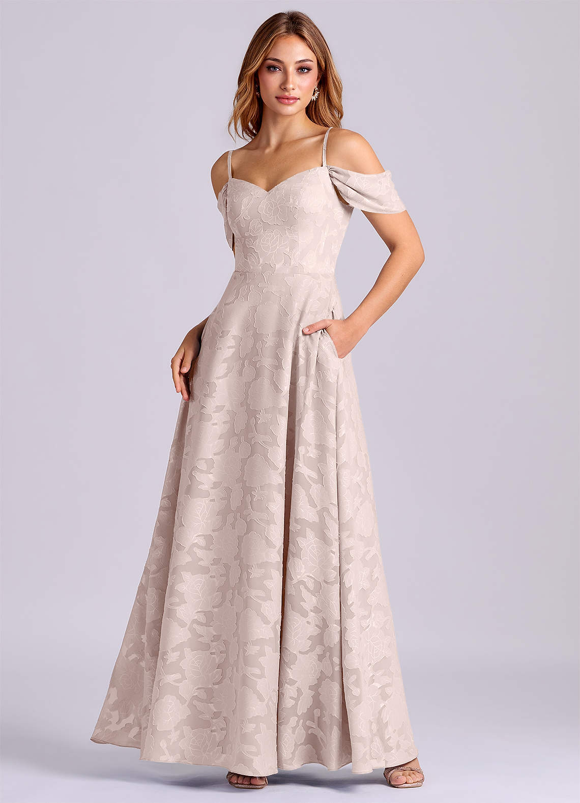 Blushing Pink A-Line Off the Shoulder Floral Burnout Convertible Dress