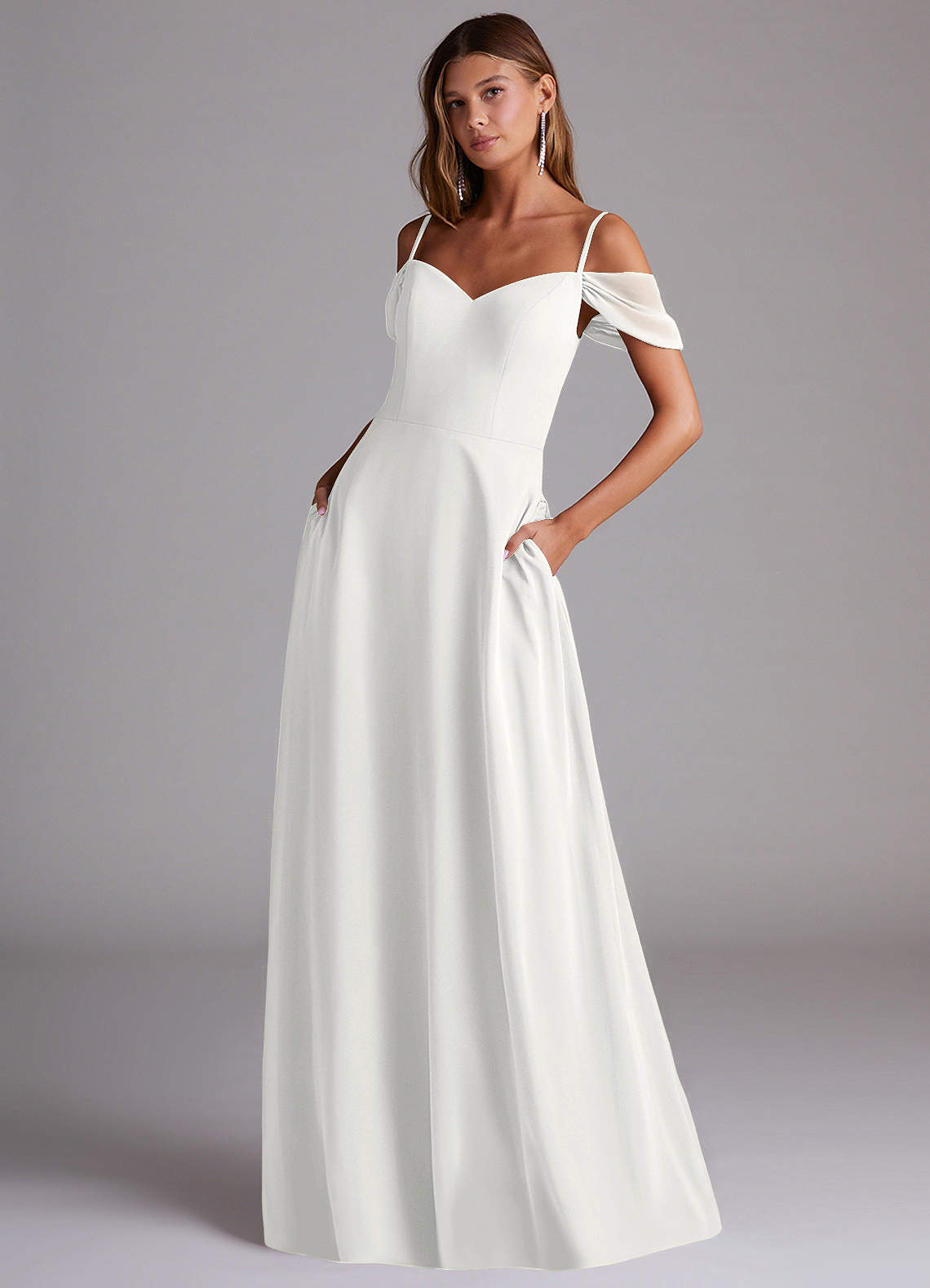 White A-Line Off the Shoulder Chiffon Convertible Dress