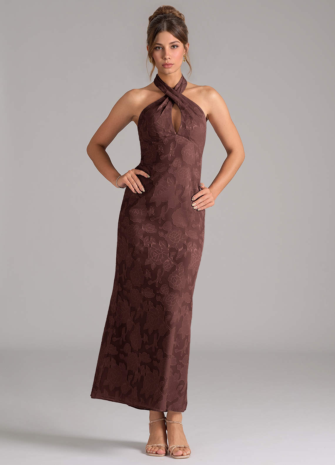 Dusty Blue Sheath Pleated Floral Burnout Dress