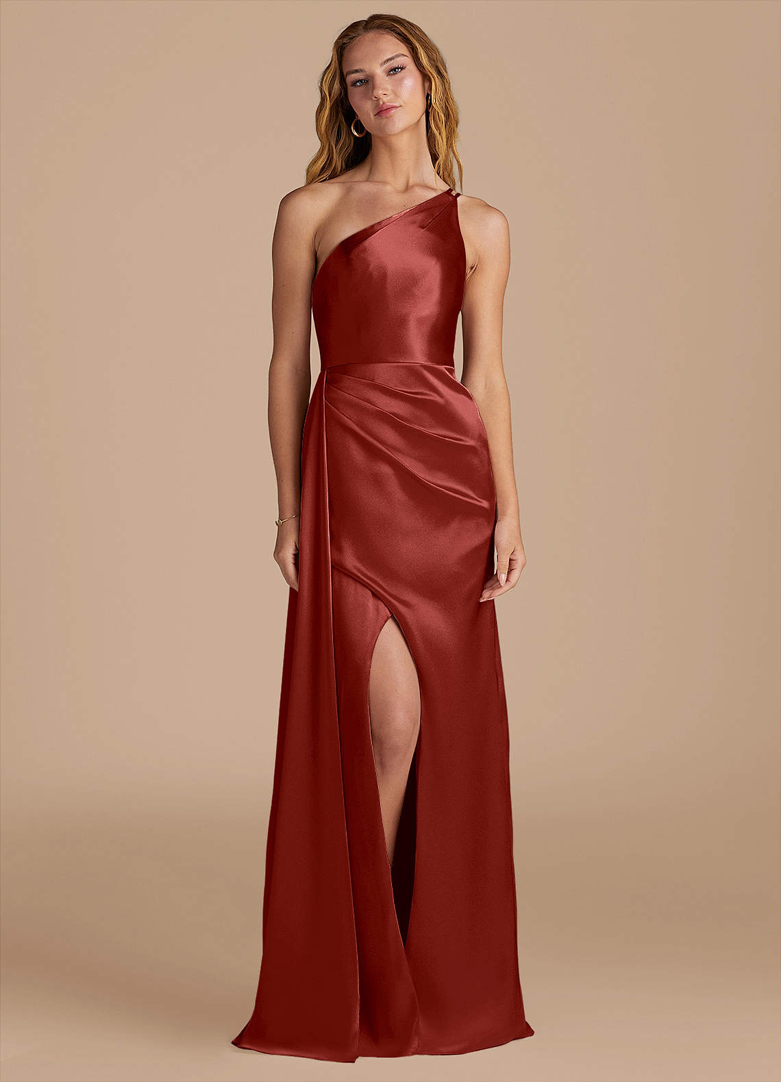 Auburn Sheath One Shoulder Metallic Satin Dress