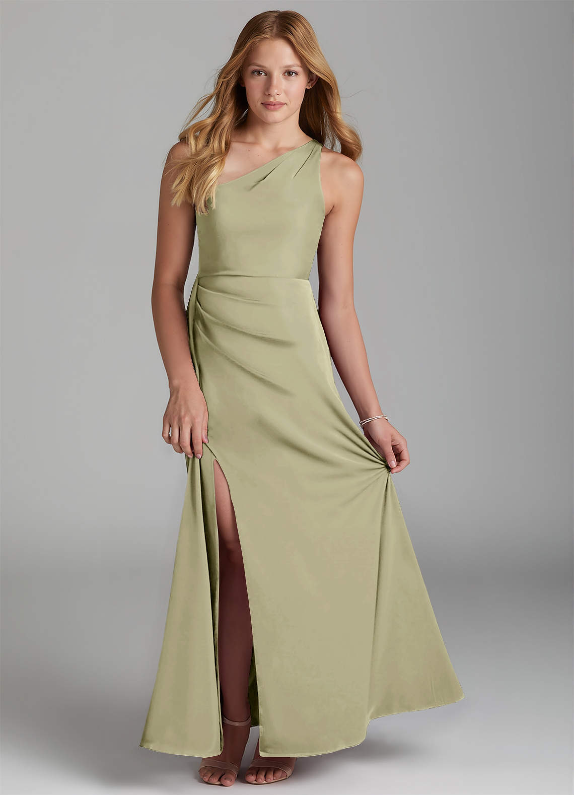 Pistachio A-Line Pleated Stretch Satin Dress