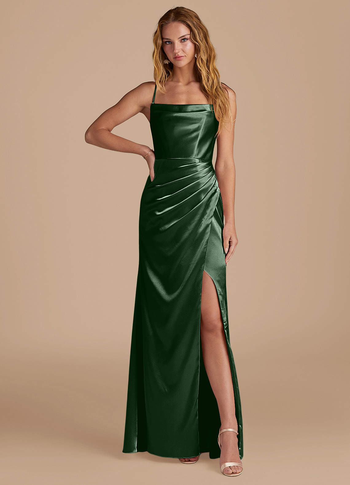 Eucalyptus Mermaid Pleated Metallic Satin Dress